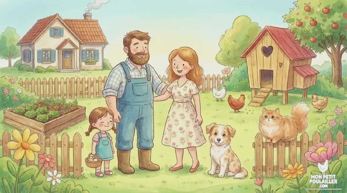 “Mon Petit Poulailler” n’est pas seulement un site de conseils, c’est le récit de notre transition vers une vie plus proche de la nature. Accompagnés de nos enfants Anna et Lucas, et de notre fidèle gardien Barnabé, nous partageons avec vous nos réussites, nos erreurs et nos astuces de menuisier pour un poulailler heureux.
